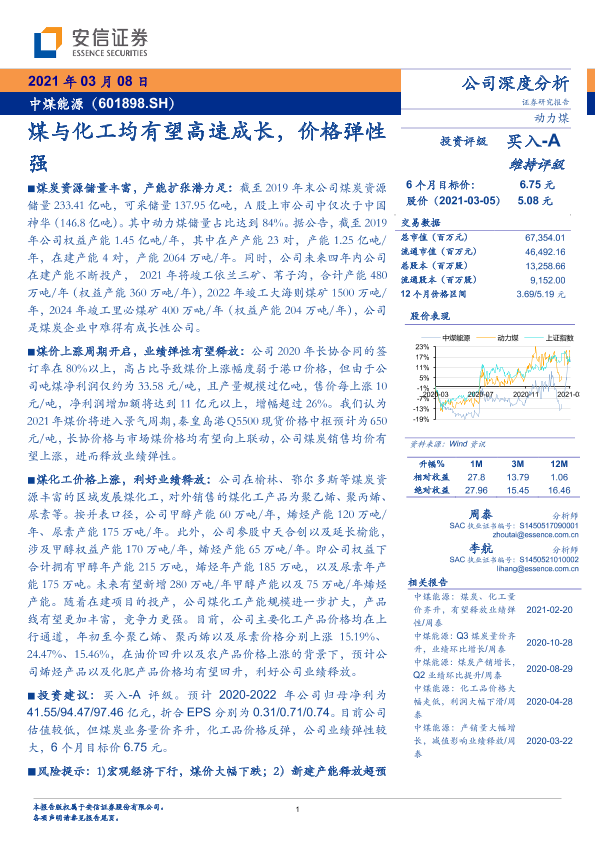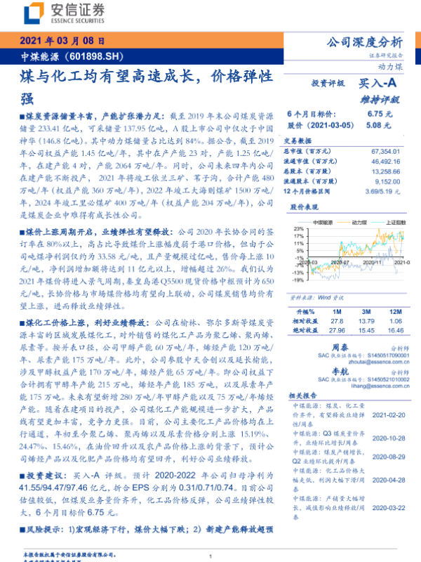 【安信证券】【20210308】中煤能源:煤与化工均有望高速成长,价格弹性强-24页