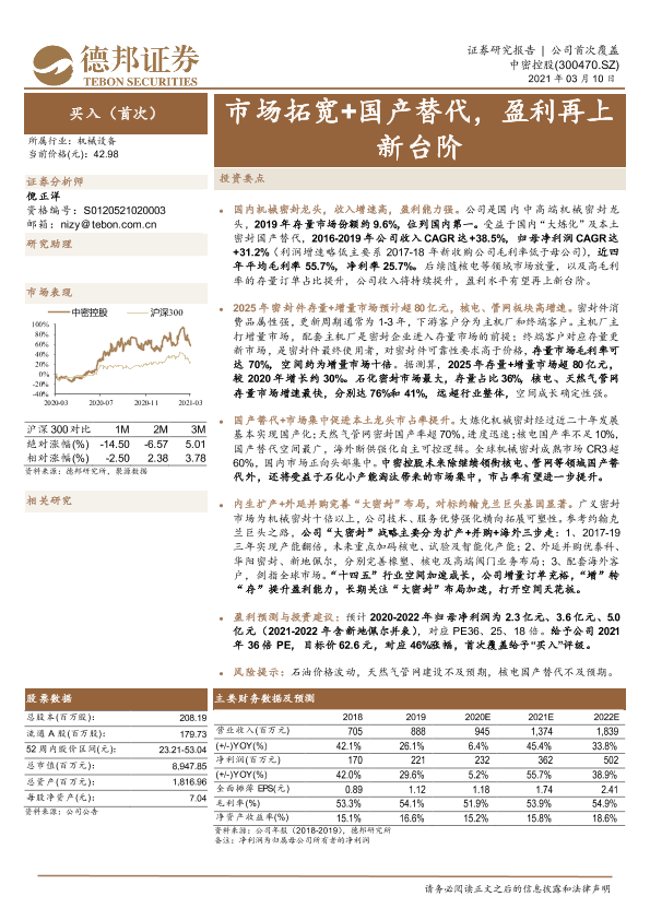 【德邦证券】【20210310】20210310-德邦证券-中密控股-300470.SZ-市场拓宽+国产替代,盈利再上新台阶-36页