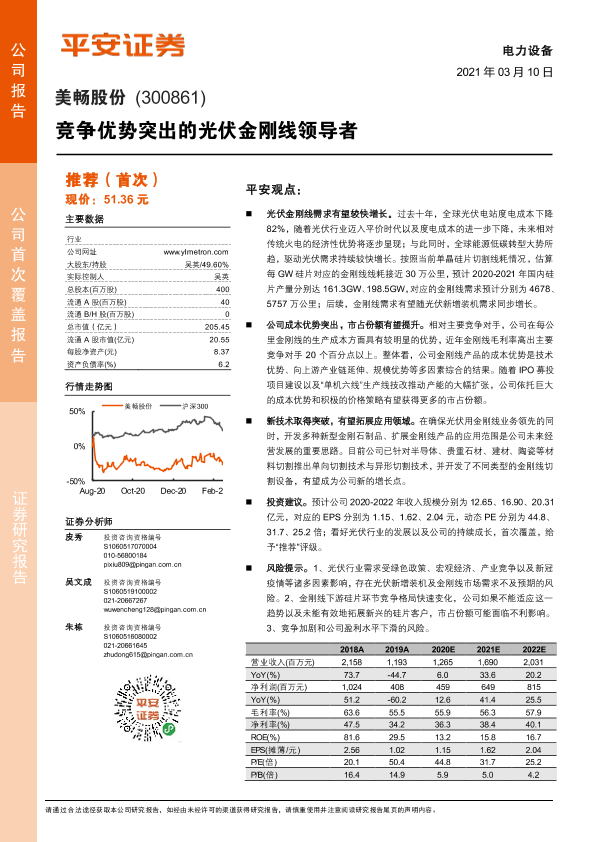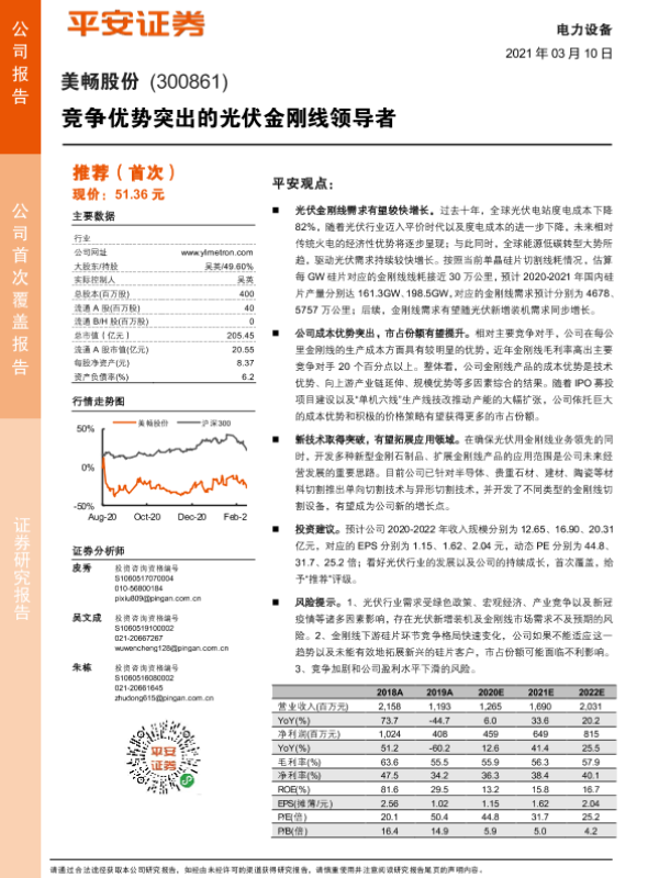 【平安证券】【20210310】竞争优势突出的光伏金刚线领导者-20页