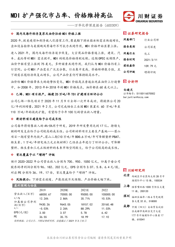 【川财证券】【20210311】万华化学深度报告:MDI扩产强化市占率、价格维持高位-32页