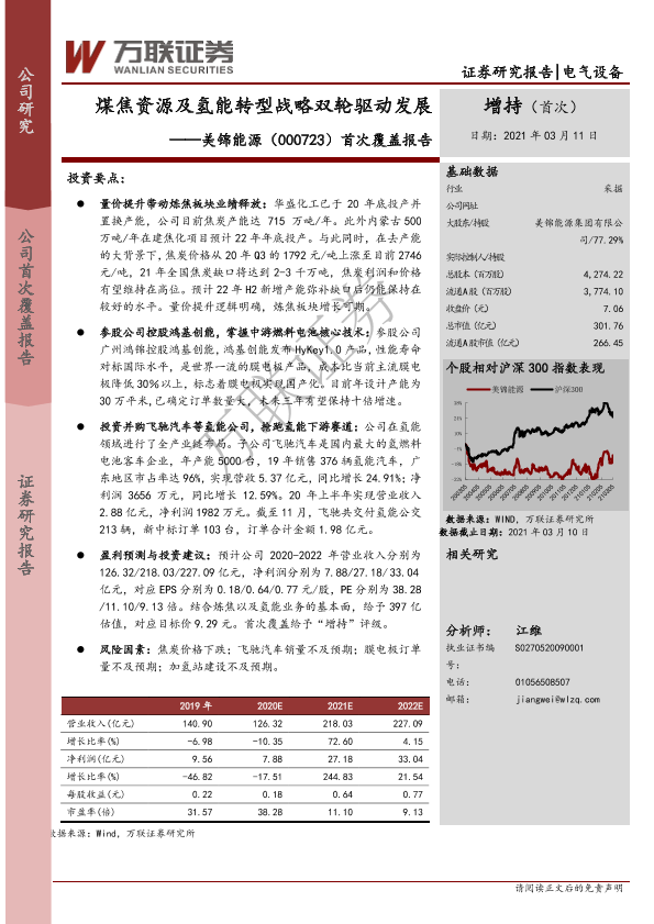 【万联证券】【20210311】20210311-万联证券-美锦能源-000723.SZ-首次覆盖报告:煤焦资源及氢能转型战略双轮驱动发展-24页