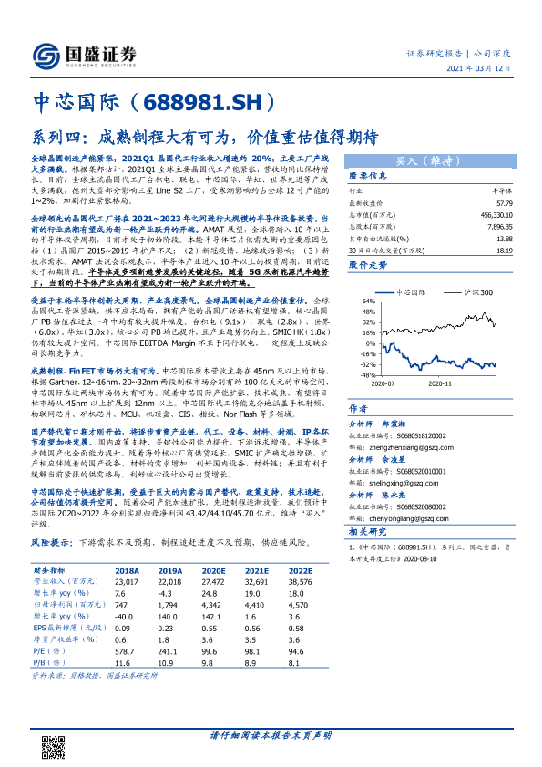 【国盛证券】【20210312】中芯国际:成熟制程大有可为,价值重估值得期待-22页