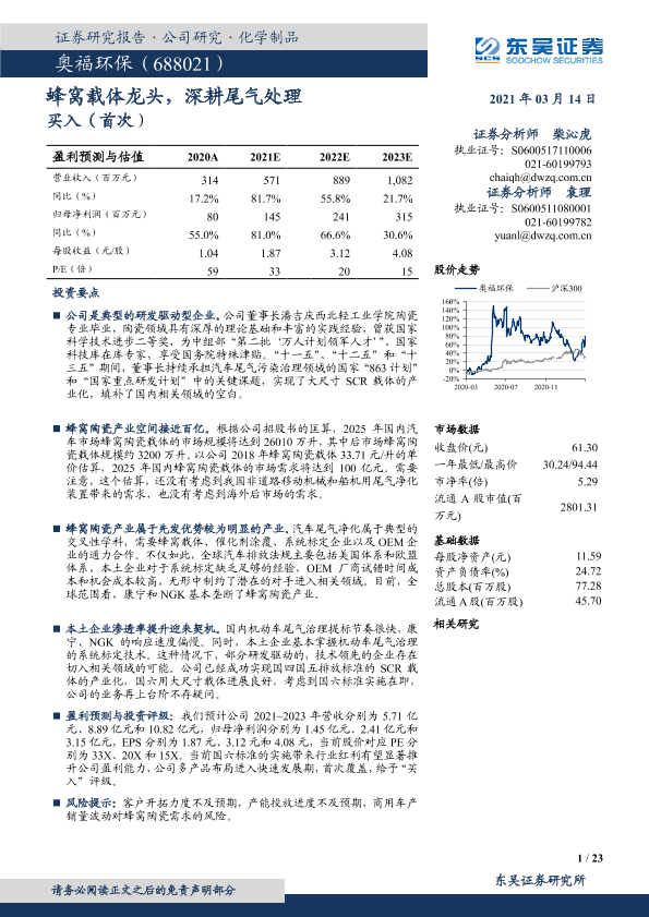 【东吴证券】【20210314】奥福环保-688021.SH-蜂窝载体龙头,深耕尾气处理-23页