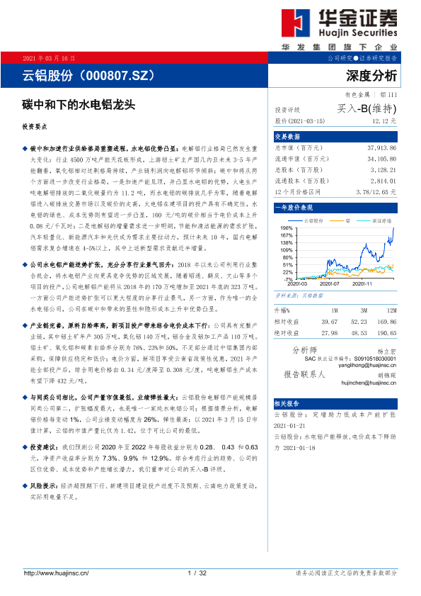 【华金证券】【20210316】碳中和下的水电铝龙头-32页