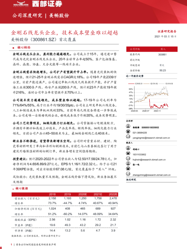 【西部证券】【20210315】美畅股份-300861.SZ-首次覆盖:金刚石线龙头企业,技术成本壁垒难以超越-33页