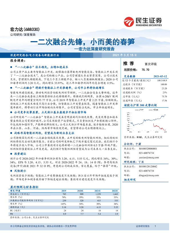 【民生证券】【20210315】宏力达深度研究报告:一二次融合先锋,小而美的春笋-26页