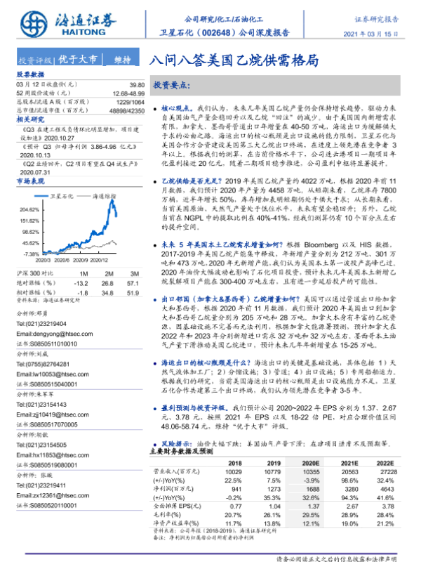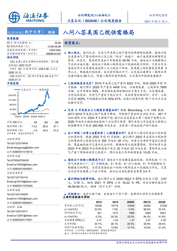 【海通证券】【20210315】20210315-海通证券-卫星石化-002648.SZ-公司深度报告:八问八答美国乙烷供需格局-41页