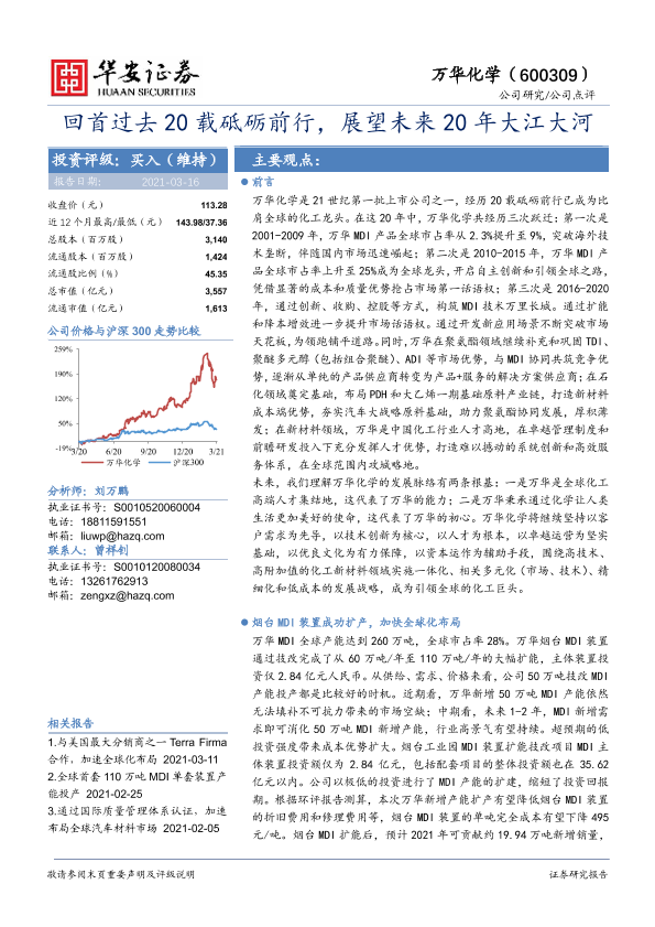MDI产能 万华化学 全球化布局 化工行业 新材料