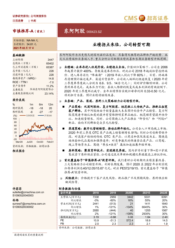 业绩拐点 东阿阿胶 中药 投资评级 转型策略
