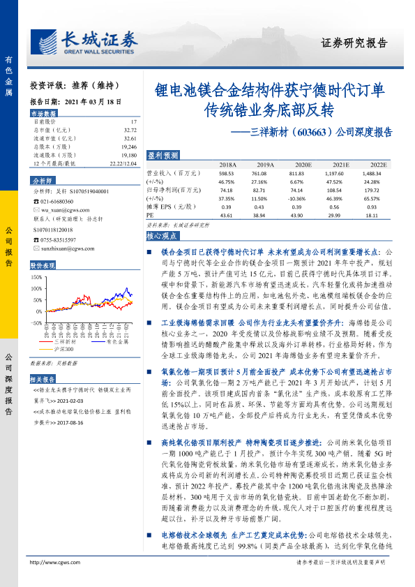 【长城证券】【20210318】20210318-长城证券-三祥新材-603663.SH-公司深度报告:锂电池镁合金结构件获宁德时代订单传统锆业务底部反转-25页