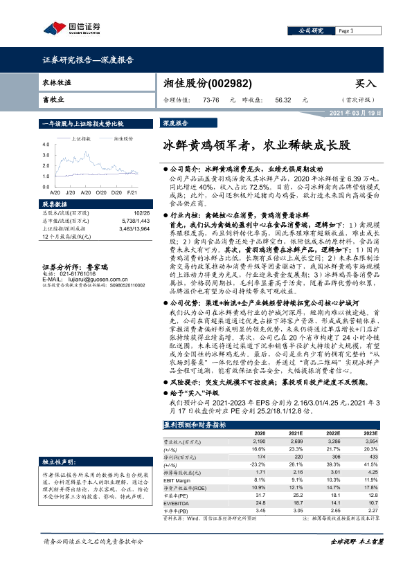 【国信证券】【20210319】湘佳股份-002982.SZ-冰鲜黄鸡领军者,农业稀缺成长股-30页