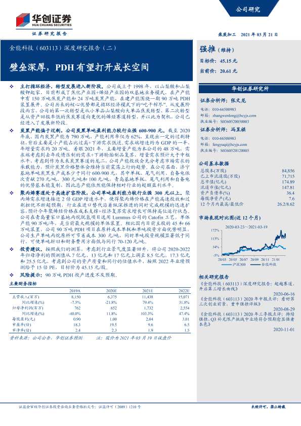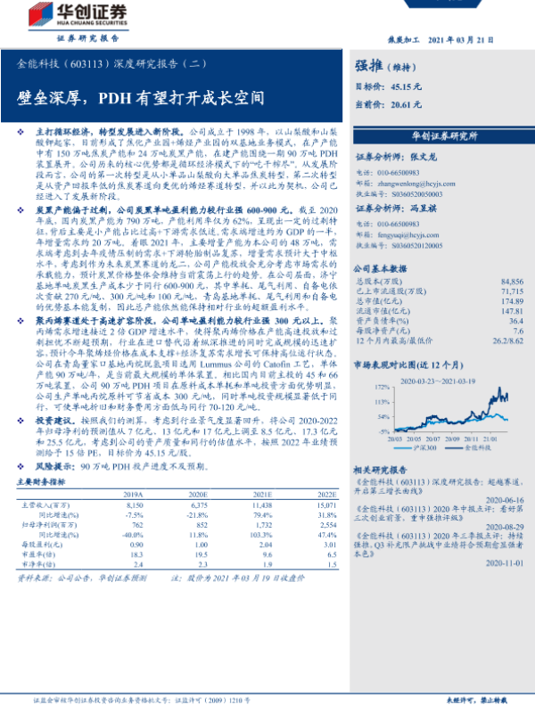 【华创证券】【20210321】金能科技-603113.SH-深度研究报告(二):壁垒深厚,PDH有望打开成长空间-19页