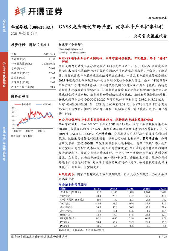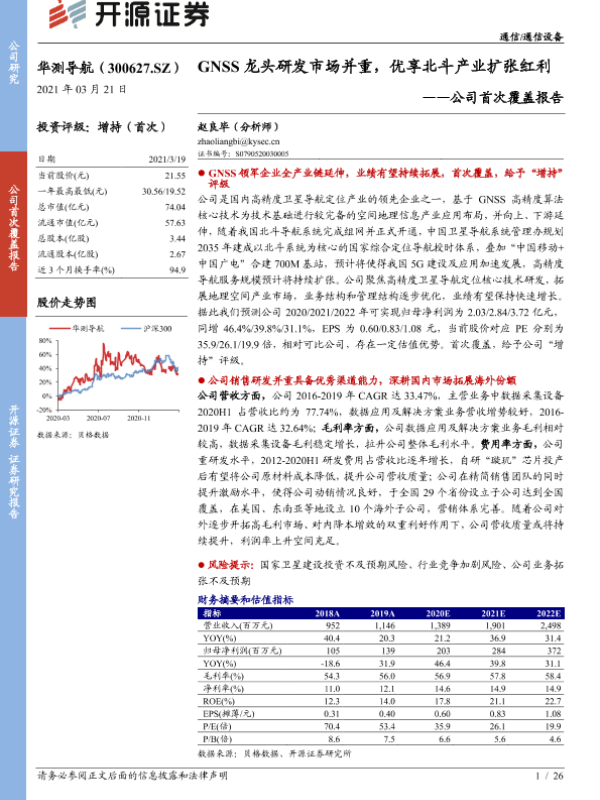 【开源证券】【20210321】华测导航-300627.SZ-公司首次覆盖报告:GNSS龙头研发市场并重,优享北斗产业扩张红利-26页
