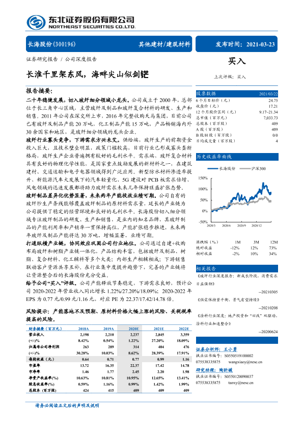 产业链布局 产能分析 建筑材料 玻纤行业 长海股份
