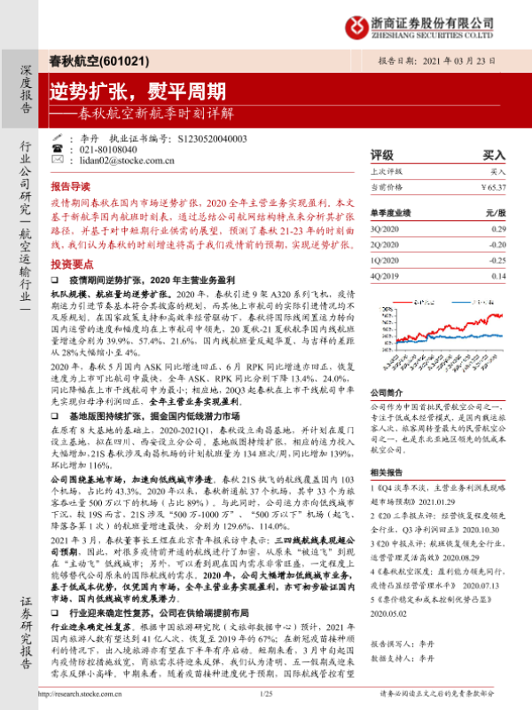 【浙商证券】【20210323】春秋航空新航季时刻详解:逆势扩张,熨平周期-25页