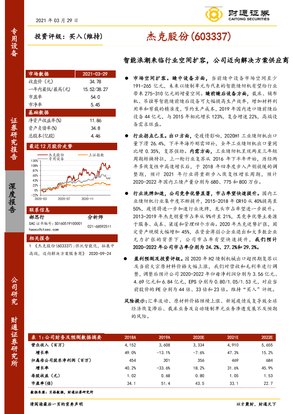 市场空间 智能缝纫机 竞争优势 缝制设备 行业拐点