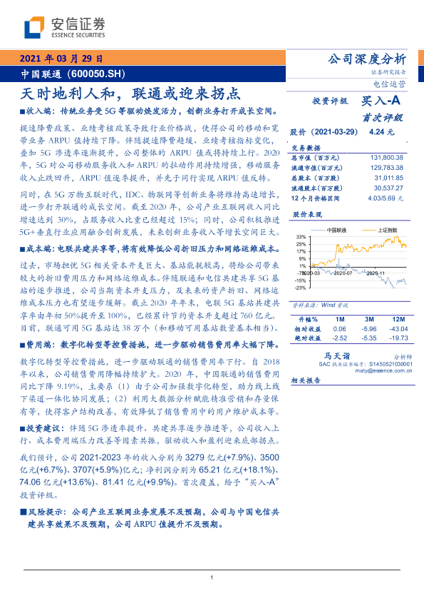 【安信证券】【20210329】天时地利人和,联通或迎来拐点-19页