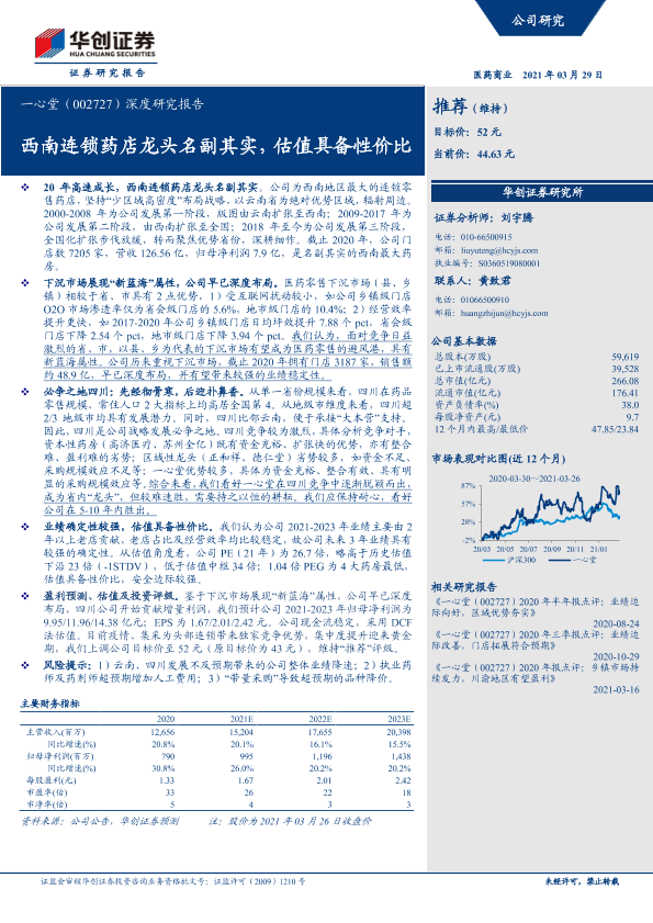 【华创证券】【20210329】20210329-华创证券-一心堂-002727.SZ-深度研究报告:西南连锁药店龙头名副其实,估值具备性价比-30页