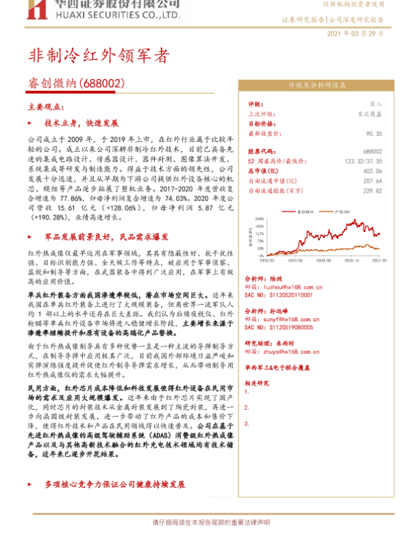 军民两用 核心竞争力 睿创微纳 高速增长 红外技术