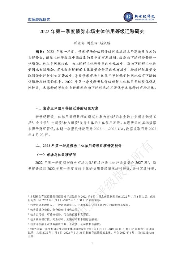 【新世纪评级】【20220423】2022年第一季度债券市场主体信用等级迁移研究-13页