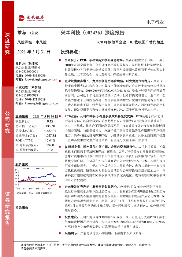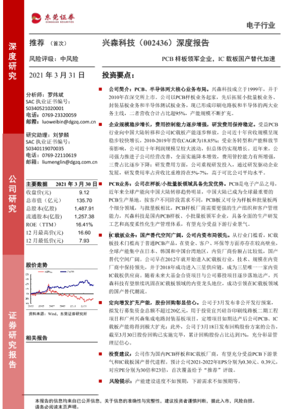 【东莞证券】【20210331】20210331-东莞证券-兴森科技-002436.SZ-深度报告:PCB样板领军企业,IC载板国产替代加速-24页