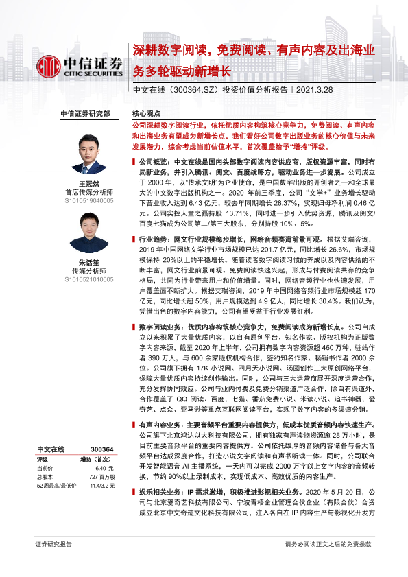 【中信证券】【20210328】深耕数字阅读,免费阅读、有声内容及出海业务多轮驱动新增长-20页
