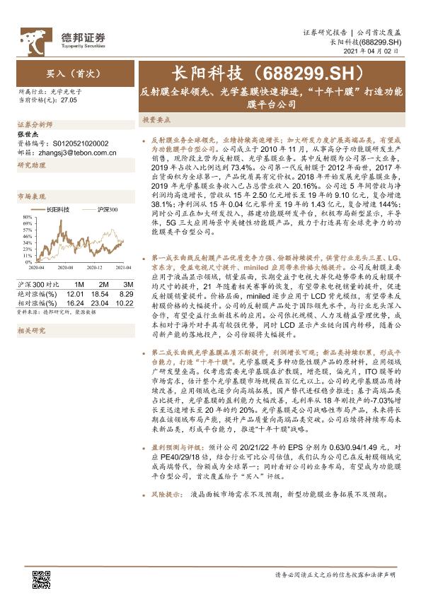 【德邦证券】【20210402】长阳科技-688299.SH-反射膜全球领先、光学基膜快速推进,“十年十膜”打造功能膜平台公司-22页