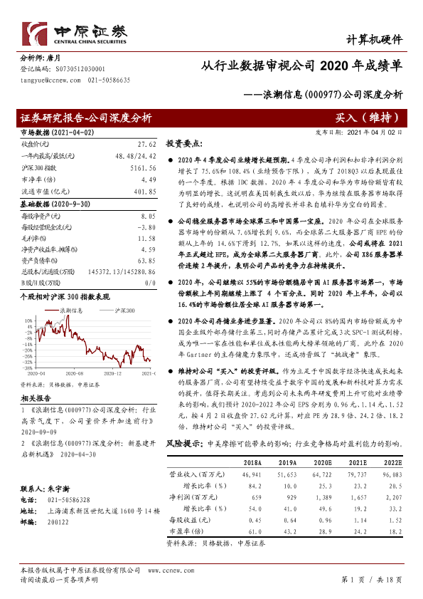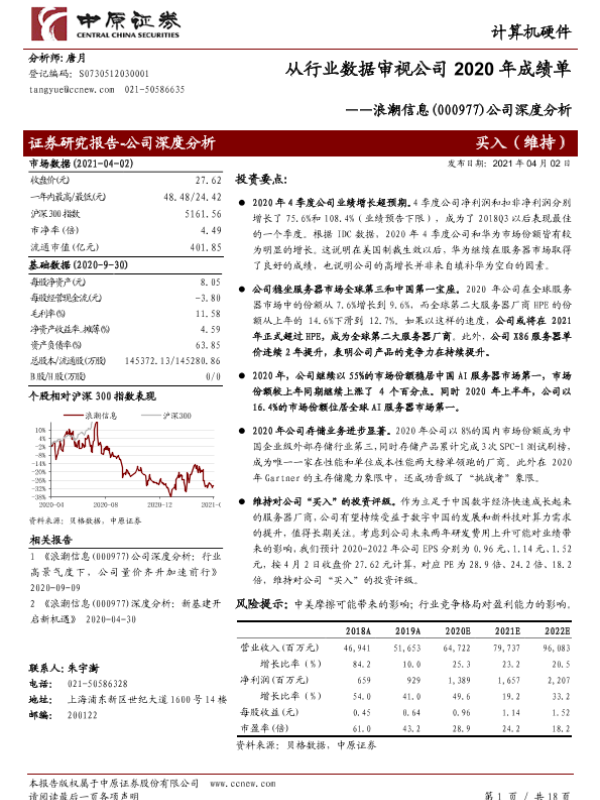 业绩增长 数字经济 浪潮信息 行业分析 服务器市场
