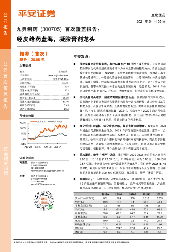 【平安证券】【20210405】九典制药(300705)首次覆盖报告:经皮给药蓝海,凝胶膏剂龙头-35页