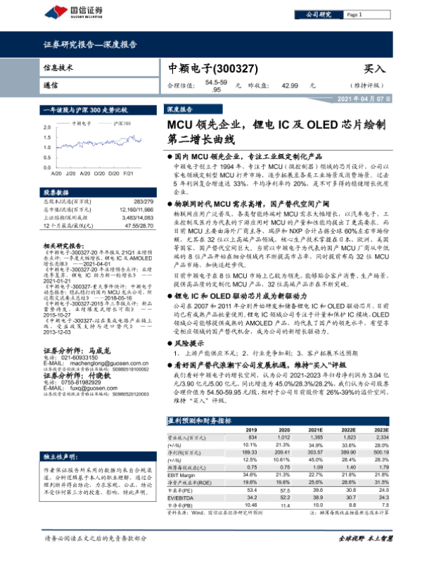 【国信证券】【20210407】中颖电子-300327.SZ-MCU领先企业,锂电IC及OLED芯片绘制第二增长曲线-33页