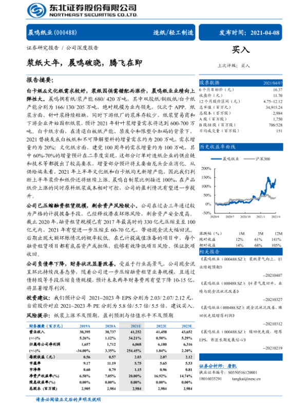 【东北证券】【20210408】浆纸大年,晨鸣破晓,腾飞在即-33页