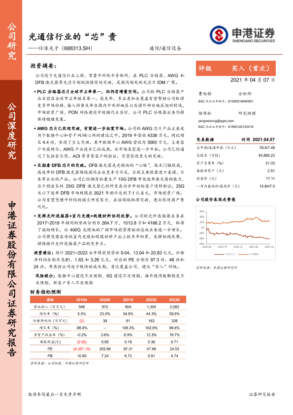 【申港证券】【20210407】光通信行业的“芯”贵——仕佳光子(688313.SH)-23页