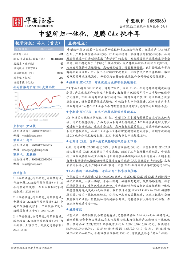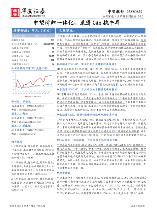 【华安证券】【20210408】20210408-华安证券-中望软件-688083.SH-工业软件系列报告(七):中望所归一体化,龙腾CAx执牛耳-50页