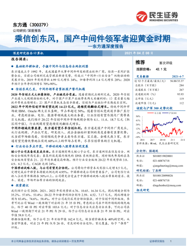 【民生证券】【20210408】20210408-民生证券-东方通-300379.SZ-东方通深度报告:乘信创东风,国产中间件领军者迎黄金时期-34页