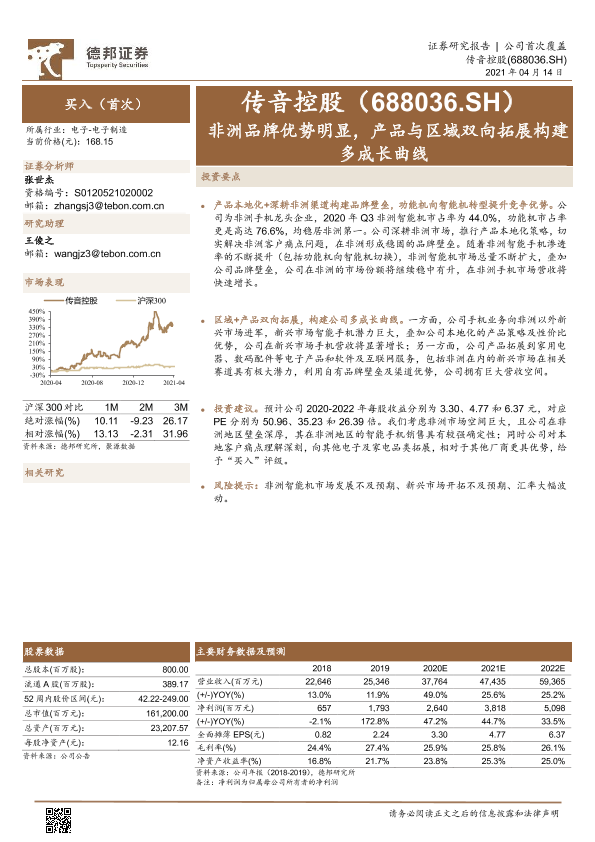 【德邦证券】【20210414】20210414-德邦证券-传音控股-688036.SH-非洲品牌优势明显,产品与区域双向拓展构建多成长曲线-27页