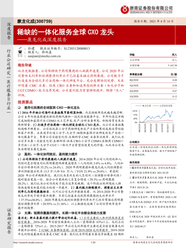 【浙商证券】【20210414】康龙化成深度报告:稀缺的一体化服务全球CXO龙头-20页