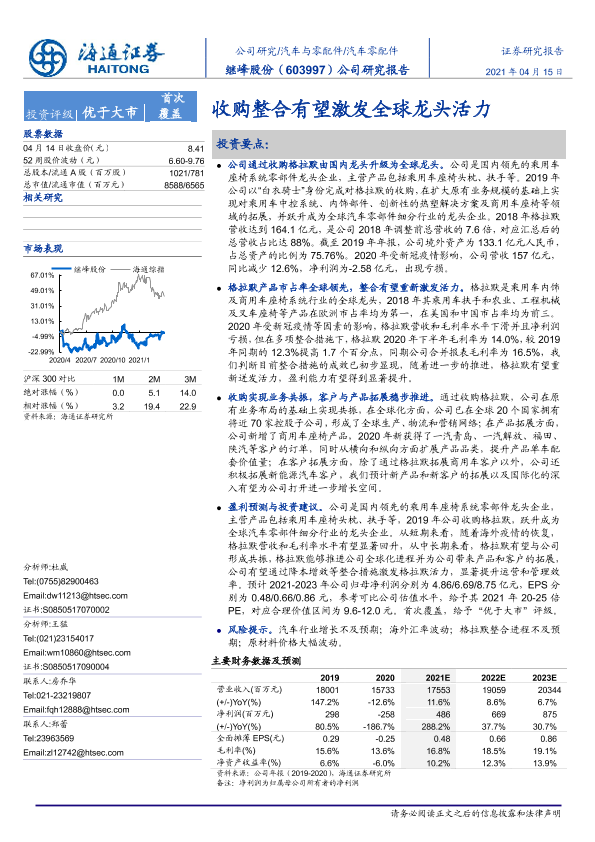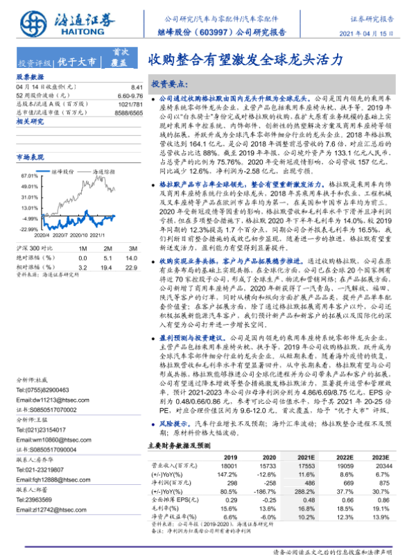 【海通证券】【20210415】继峰股份-603997.SH-公司研究报告:收购整合有望激发全球龙头活力-19页