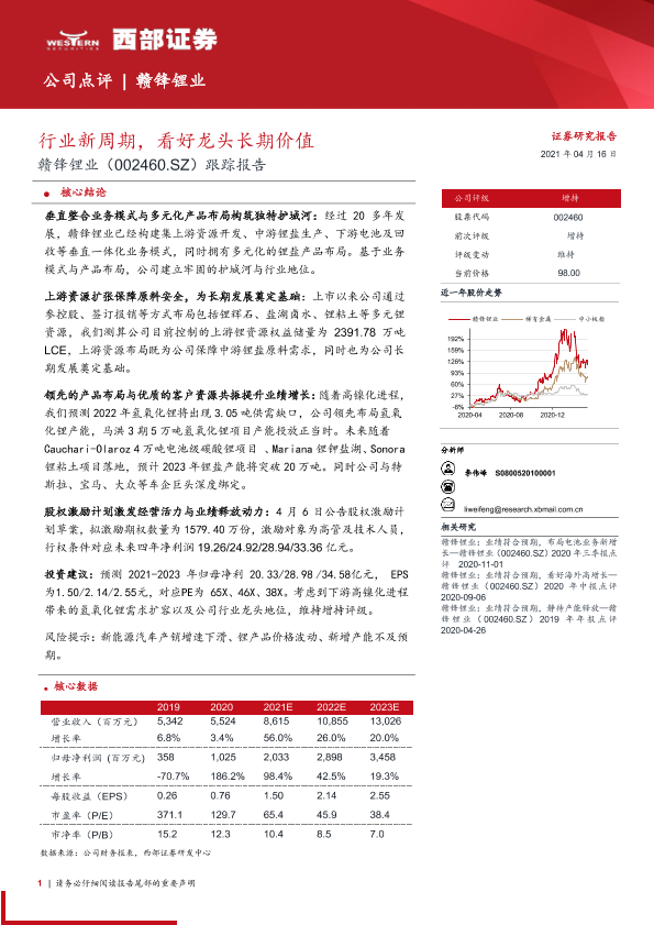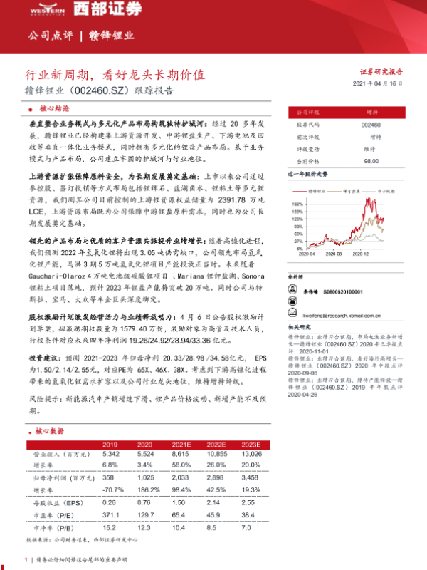 【西部证券】【20210416】20210416-西部证券-赣锋锂业-002460.SZ-跟踪报告:行业新周期,看好龙头长期价值-24页
