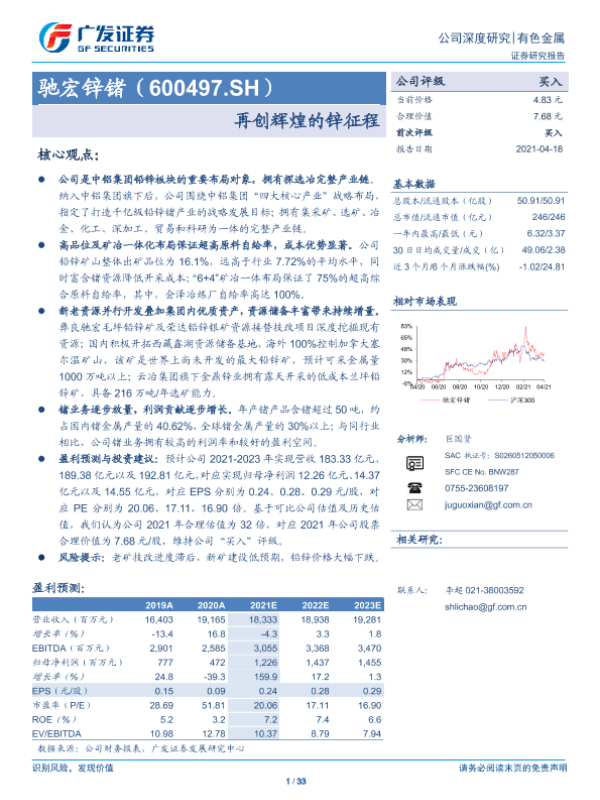 【广发证券】【20210418】驰宏锌锗(600497.SH):再创辉煌的锌征程-33页