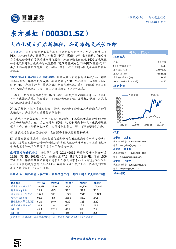 【国盛证券】【20210420】大炼化项目开启新征程,公司跨越式成长在即-28页