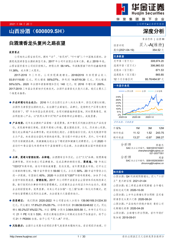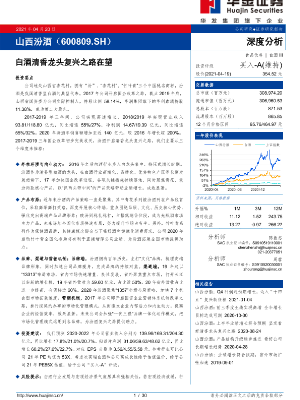 【华金证券】【20210420】山西汾酒(600809.SH)深度分析:白酒清香龙头复兴之路在望-30页