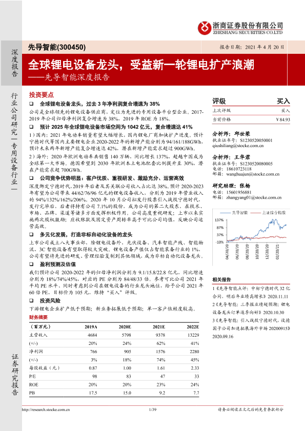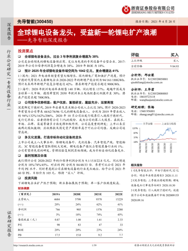 【浙商证券】【20210420】先导智能深度报告:全球锂电设备龙头,受益新一轮锂电扩产浪潮-39页