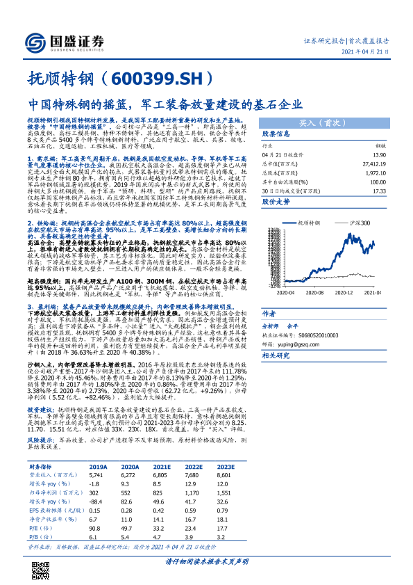 【国盛证券】【20210421】中国特殊钢的摇篮,军工装备放量建设的基石企业-26页