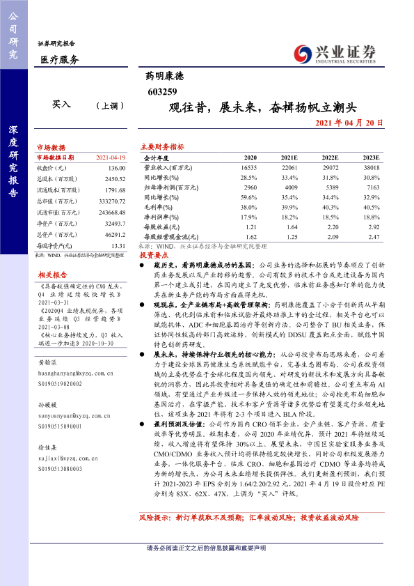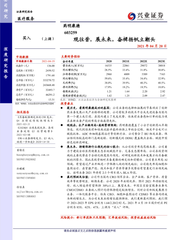 CXO 创新药研发 医疗服务 细胞和基因治疗 药明康德
