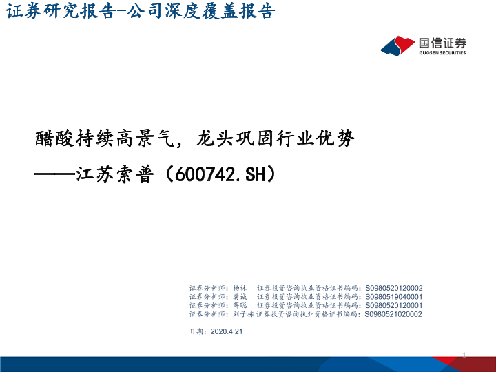 【国信证券】【20210421】醋酸持续高景气,龙头巩固行业优势-34页