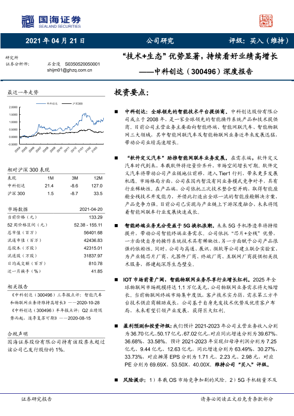 【国海证券】【20210421】中科创达(300496)深度报告:“技术+生态”优势显著,持续看好业绩高增长-29页
