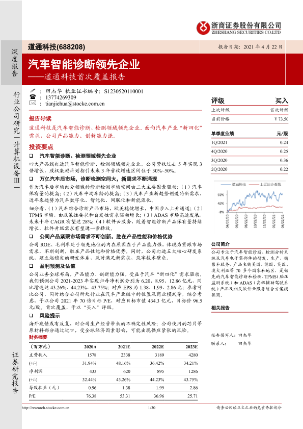 【浙商证券】【20210422】道通科技首次覆盖报告:汽车智能诊断领先企业-30页