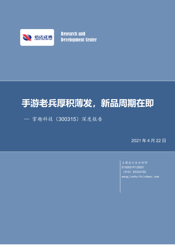 【信达证券】【20210422】20210422-信达证券-掌趣科技-300315.SZ-深度报告:手游老兵厚积薄发,新品周期在即-32页
