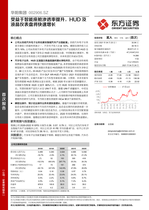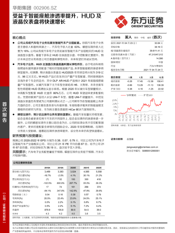 【东方证券】【20210424】华阳集团-受益于智能座舱渗透率提升,HUD及液晶仪表盘将快速增长-27页