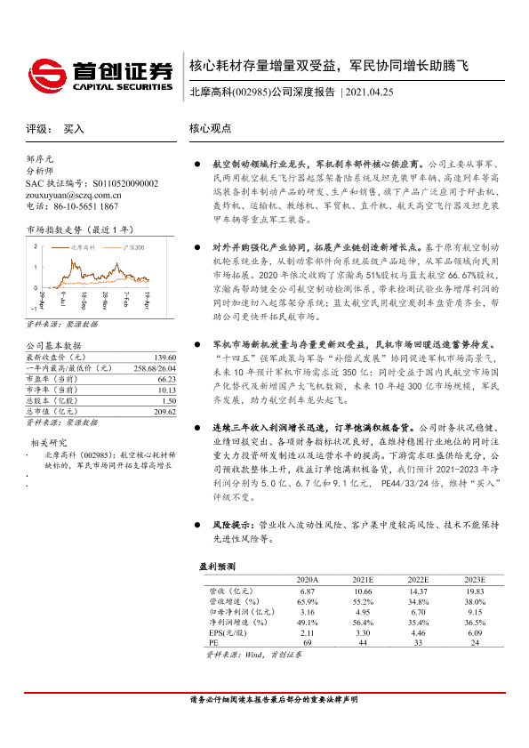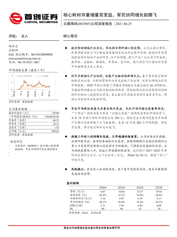 【首创证券】【20210425】20210425-首创证券-北摩高科-002985.SZ-公司深度报告:核心耗材存量增量双受益,军民协同增长助腾飞-31页